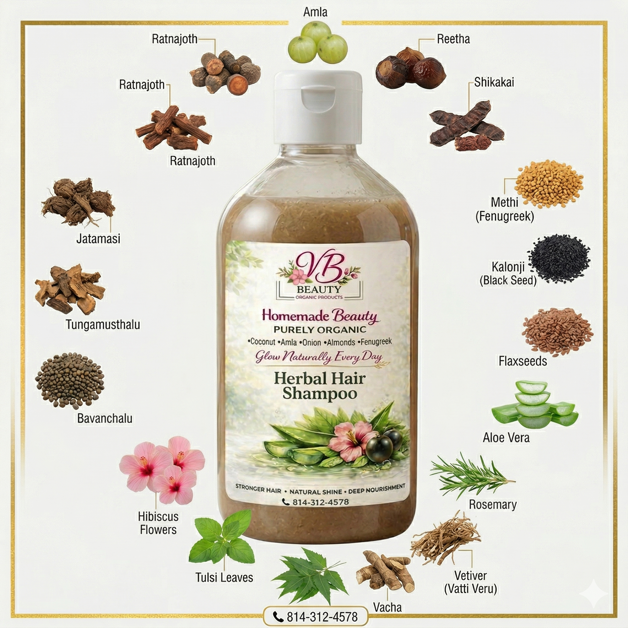 Experience the magic of 100% natural ingredients with our handmade Herbal Hair Shampoo! Carefully crafted with a traditional blend of potent, hair-loving herbs, this pure formula gently cleanses your scalp while delivering deep nourishment. Free from harsh chemicals, parabens, and sulfates, it provides a safe, organic wash that leaves your hair naturally glowing, soft, and smooth every single day. Because healthy hair starts with the right shampoo!